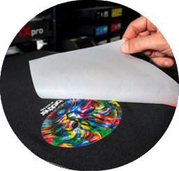 Le visuel est imprimé directement sur le support à l’aide d’une imprimante spéciale.